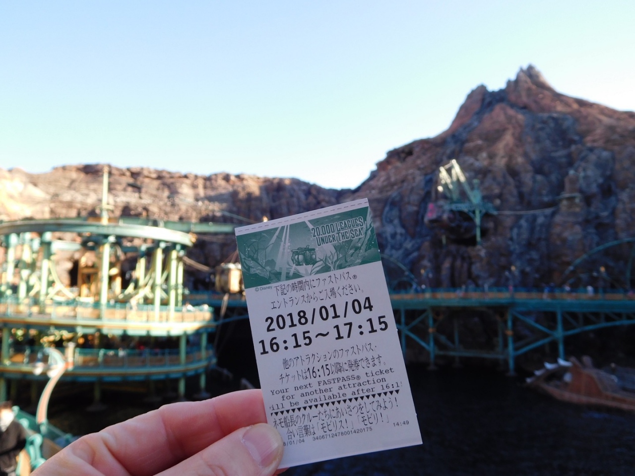 平日はスタンバイでも5分ほどですが、今回はお正月期間の1月4日に利用したためファストパスも発券されていました。
