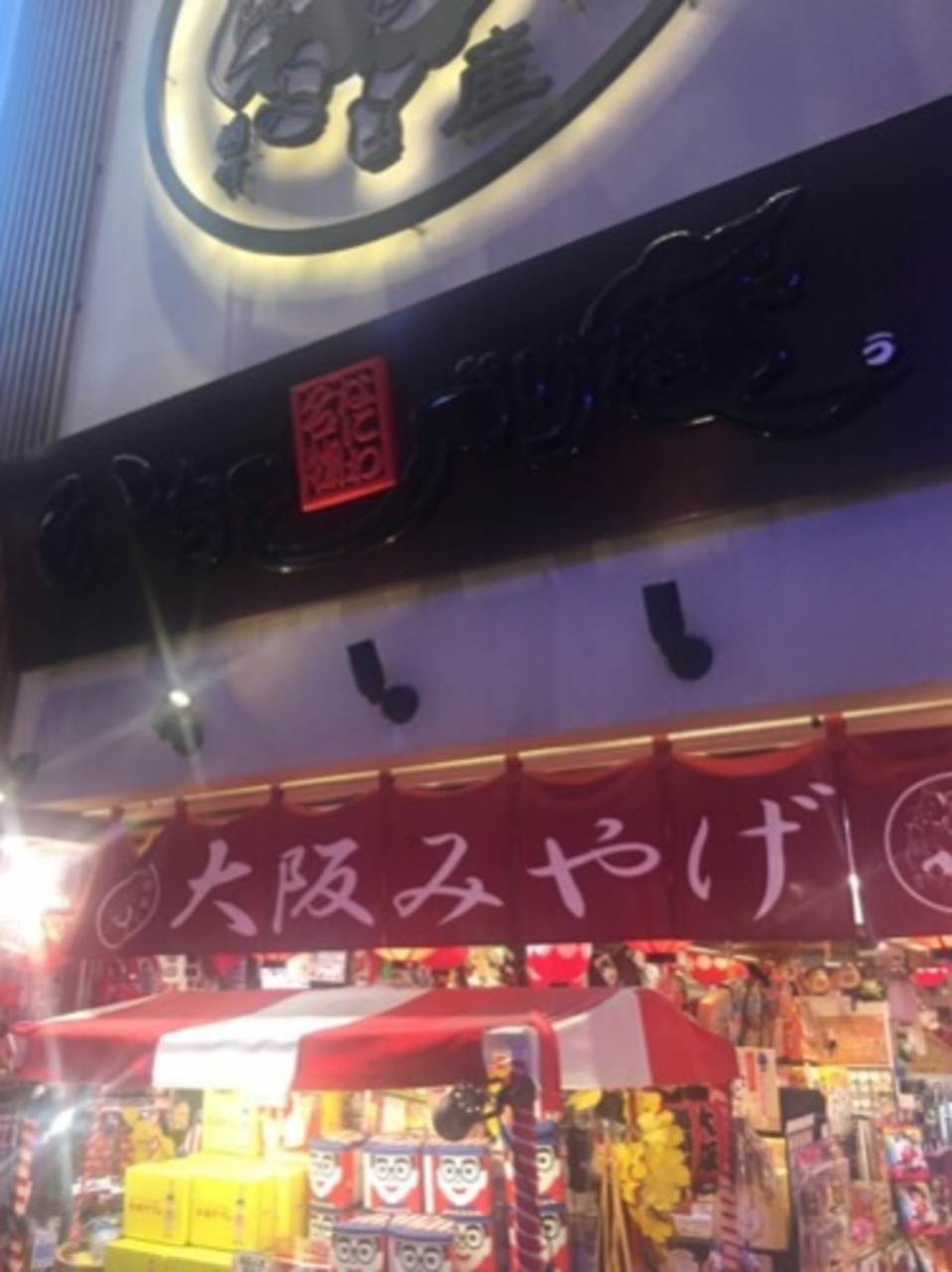 道頓堀の有名な中座くいだおれビルにあるお土産屋です。外国人から国内観光客まで、沢山の人で賑わっています。