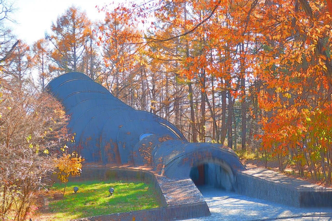 軽井沢のハルニレテラスを過ぎた先を西に入ったホテルブレストンコート駐車場の奥に石の教会内村鑑三記念堂があります。