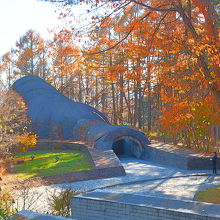 訪れたときに、丁度結婚式が執り行われており、教会手前上の通路からの外観見学しかできませんでした。教会の姿を見て、登り窯の様な姿に似ている面白い形状の教会でした。きっと、内部も印象的な教会なんだと思います。