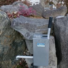 ここの井戸の面白いところは、ほかの井戸と違って水が湧き出してないので、自分自身でてポンプのレバーを上下して押し出す方式で、これが意外と楽しいものでした。