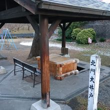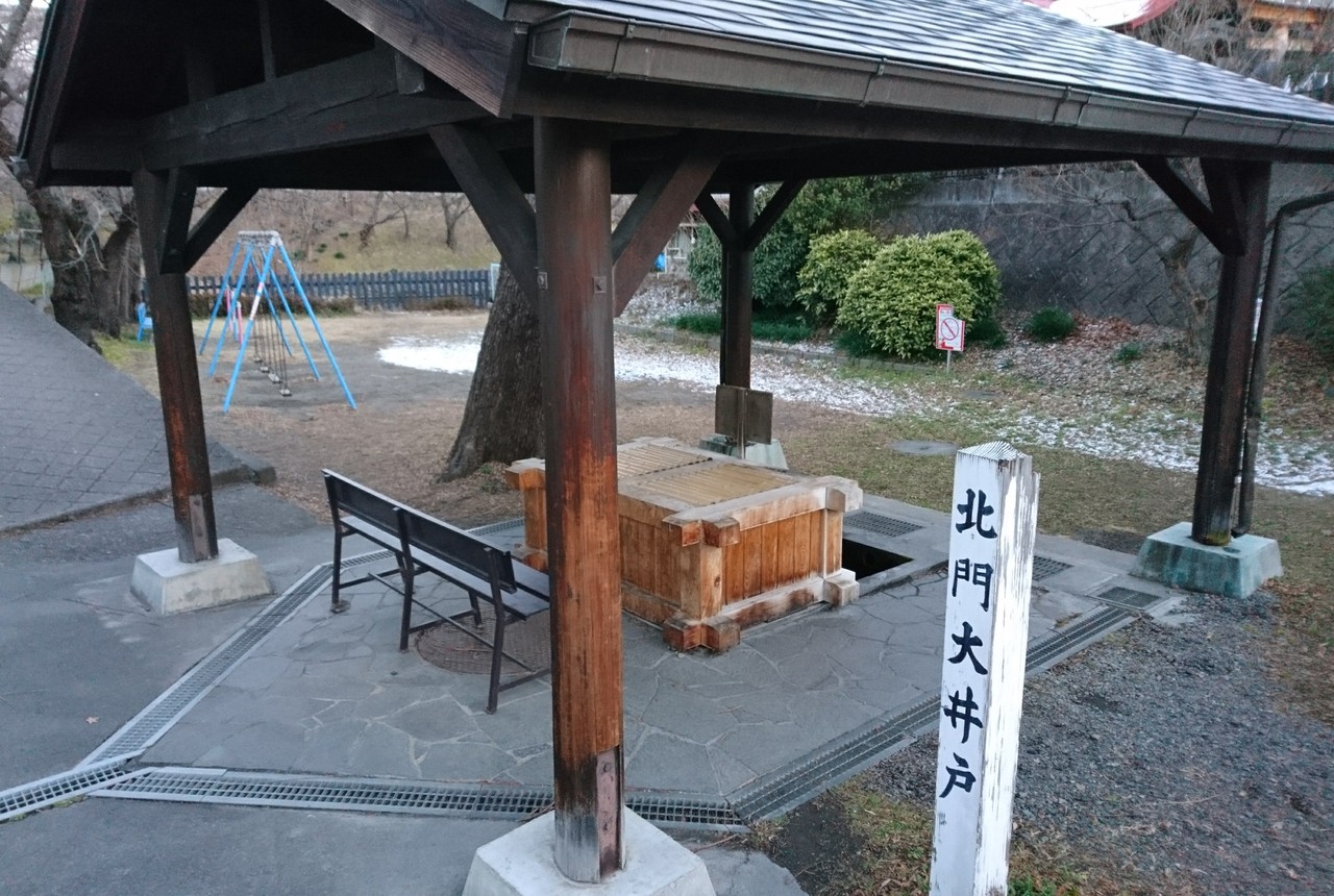 松本城公園から少し離れたところにある北門大井戸は松本市内のほかの井戸よりもかなり大型のもので二つのトイが出ていてすごい水量の水が出ていました。