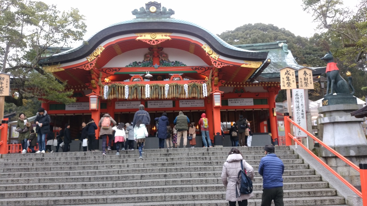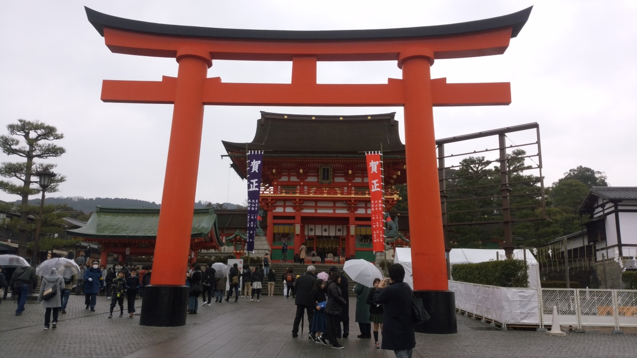 岡山の厄除蓮台寺他を参拝後一泊して京都へ、翌日は石清水八幡宮等を観光して15時過ぎに稲荷神社に到着しましたが、交通規制で神社の駐車場にいかれず、近隣の駐車場も一杯で断念して宿泊先のハトヤ鳳凰閣で休憩後京都駅周辺を散策しました。事前の調査では正月3日と土日が交通規制だったと思いましたが、電話で確認すると5日迄交通規制だそうです。前日の反省もあり、早朝に宿を出発して8時に着きましたが、既に駐車場は満車でしたが、待ち時間は長くなくラッキー。駐車場から朱塗りの桜門へ行きましたが綺麗でした。十数年前にも来ましたが、再度行きたかった大社です。天正7年に豊臣秀吉が寄進したと伝えられ、重文の本殿は明応8年再興された檜皮葺の建物だそうです。桜門外拝殿、本殿を廻り、稲荷山を目指しました。稲荷大神鳥居、千本鳥居、奥之院奥社参拝所とおもかる石を持ち上げ、熊慶社、三ノ峰から二ノ峰い行く途中で、女房がもう登れないと云うので仕方なく降りましたが、降りる道専用の道から降りる途中にも大小様々な神社があり、その中の一つに「身代わり神社」があり、その隣に「三宝のおもかる石」がありました。三度持ち上げて祈念すると願いが叶うそうです。結構重たい石でした。稲荷山の頂上に行けなかったのは残念ですが、十分楽しむことが出来て良かったです。