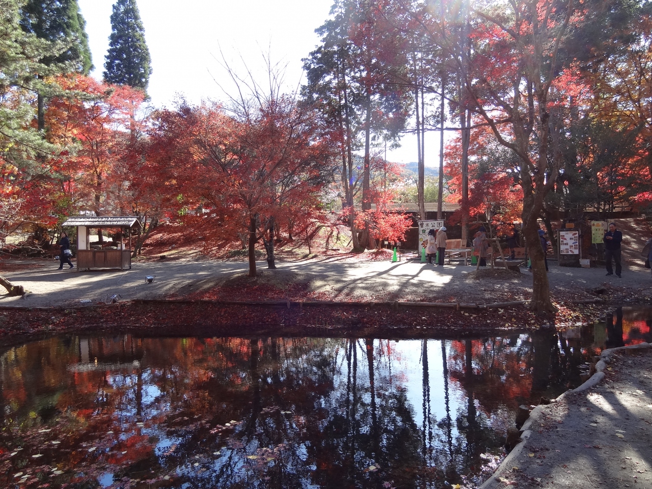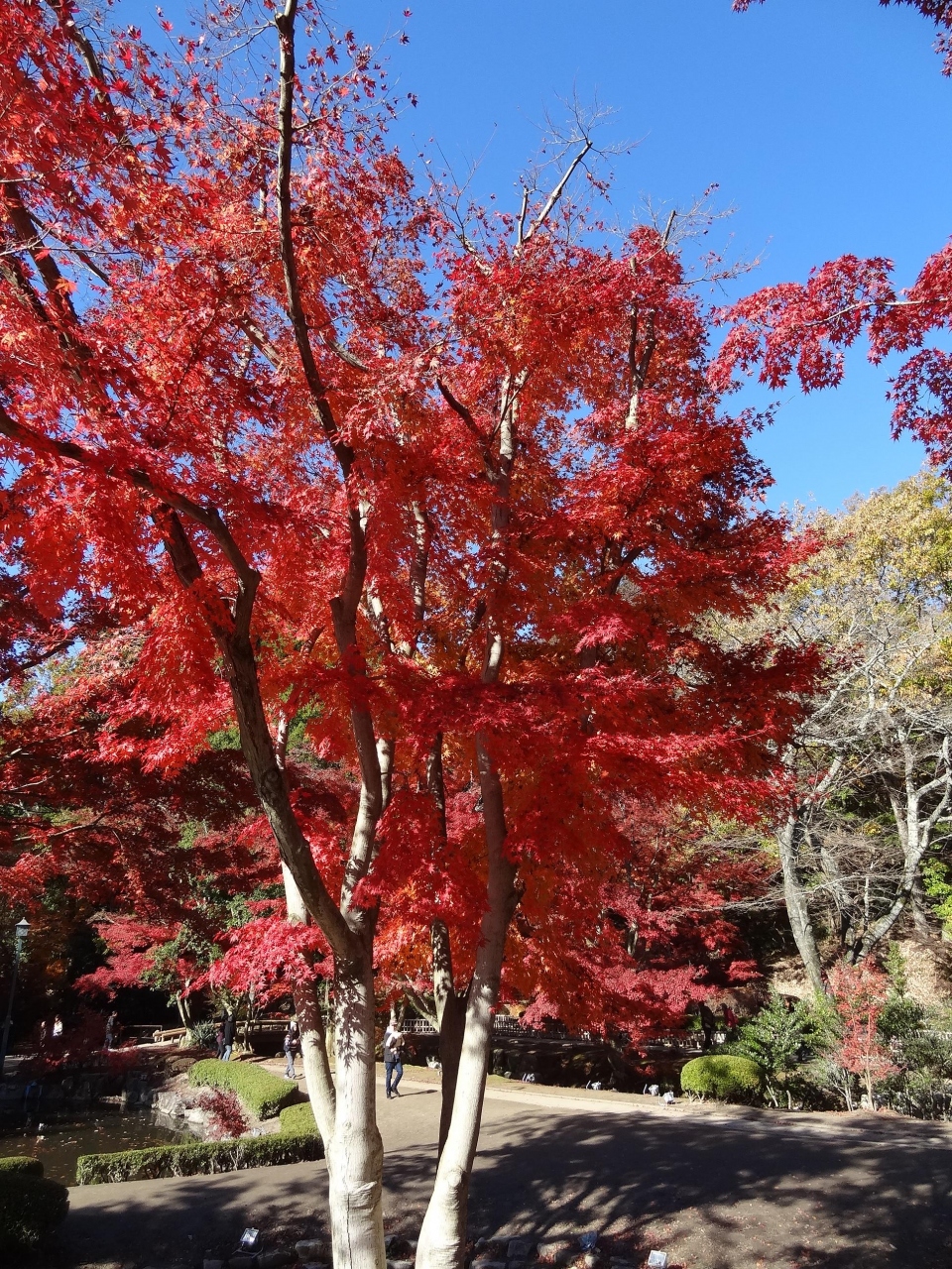 近くの無料駐車場はどこも満杯。空くのを15分ほど待ってようやく駐車できました。道路の向こう側にある公園まで少しだけ歩きます。公園の中は至るところにたくさんのモミジの木が立っていて、この世の景色とは思えないほどの美景が続きました。小川が流れていたり小さな池があるのも趣があっていいです。子供連れでもピクニック気分でもお勧めの公園でした。