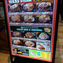 イオンモール木更津店のフードコートにあるステーキの専門店です。テキサスステーキは、120グラム~240グラムまで量を選ぶことができます。また、ソースもガーリック、ガーリッククリーム、ジンジャー、おろしぽん酢から選択することができます。鉄板の上でジュージューいっている焼きたてのステーキは肉も柔らかくて美味しいです。