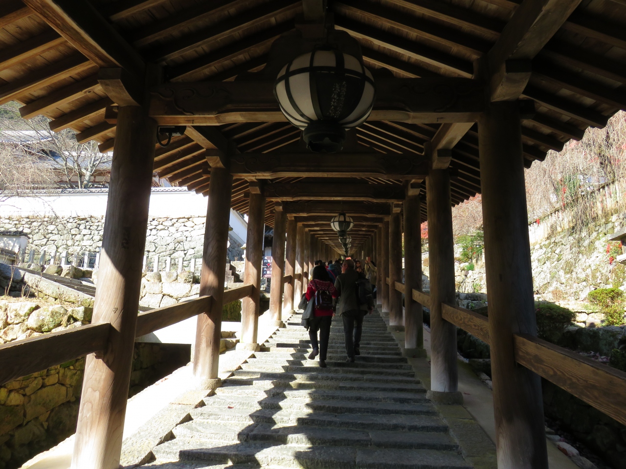 長谷寺の本堂へは長い登廊をのぼって行きます。399段あるとのことですが、緩やかなのでそんなにきつい感じはありませんでした。何とも風情のある登廊で他の観光客と同様に写真を撮りながら登って行くことに。この登廊だけでもお勧めのスポットと言えるでしょう。