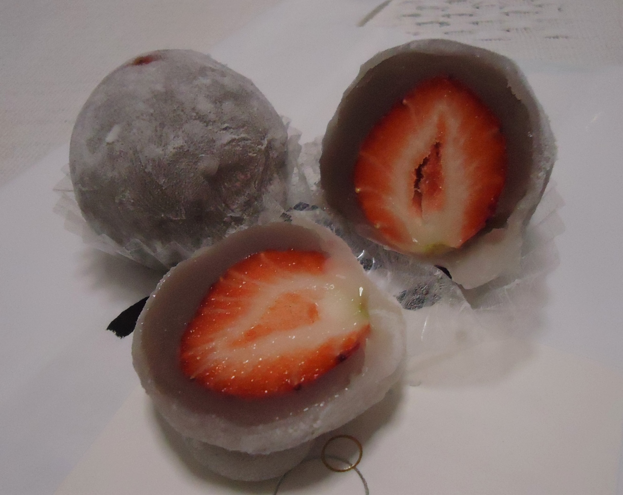 福岡県産の苺「あまおう」を柔らかな求肥で包んであります。