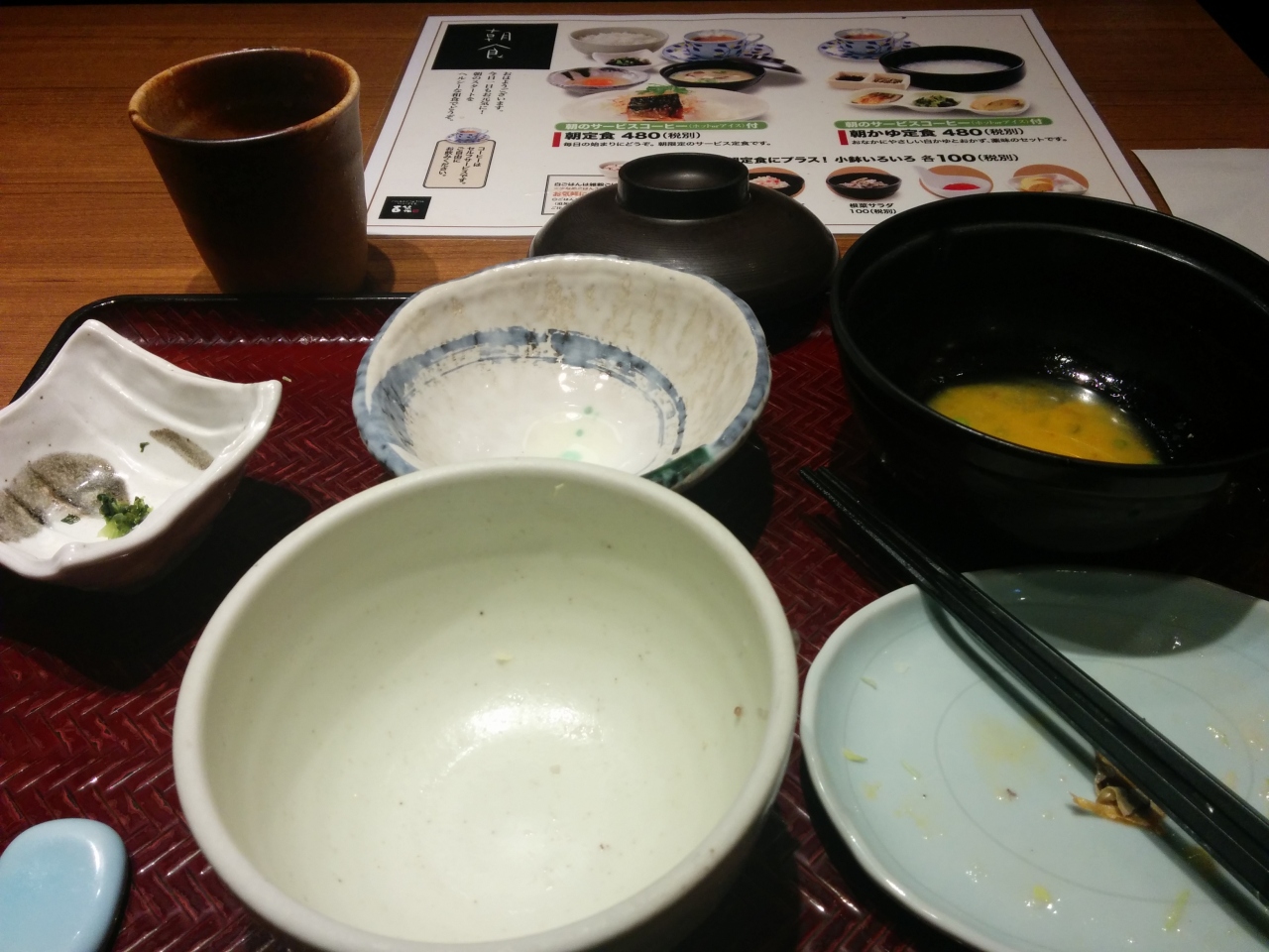ここの朝食定食は値段が安く、とても美味しく、無料のコーヒー付きということでお得な定食屋百彩でした。