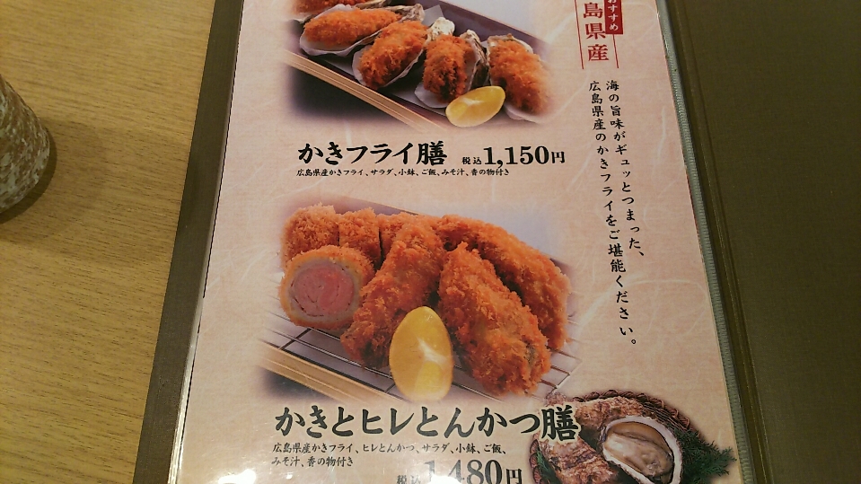 かきとヒレとんかつ膳、かきは小さ目でヒレかつはさくさくしていない。
