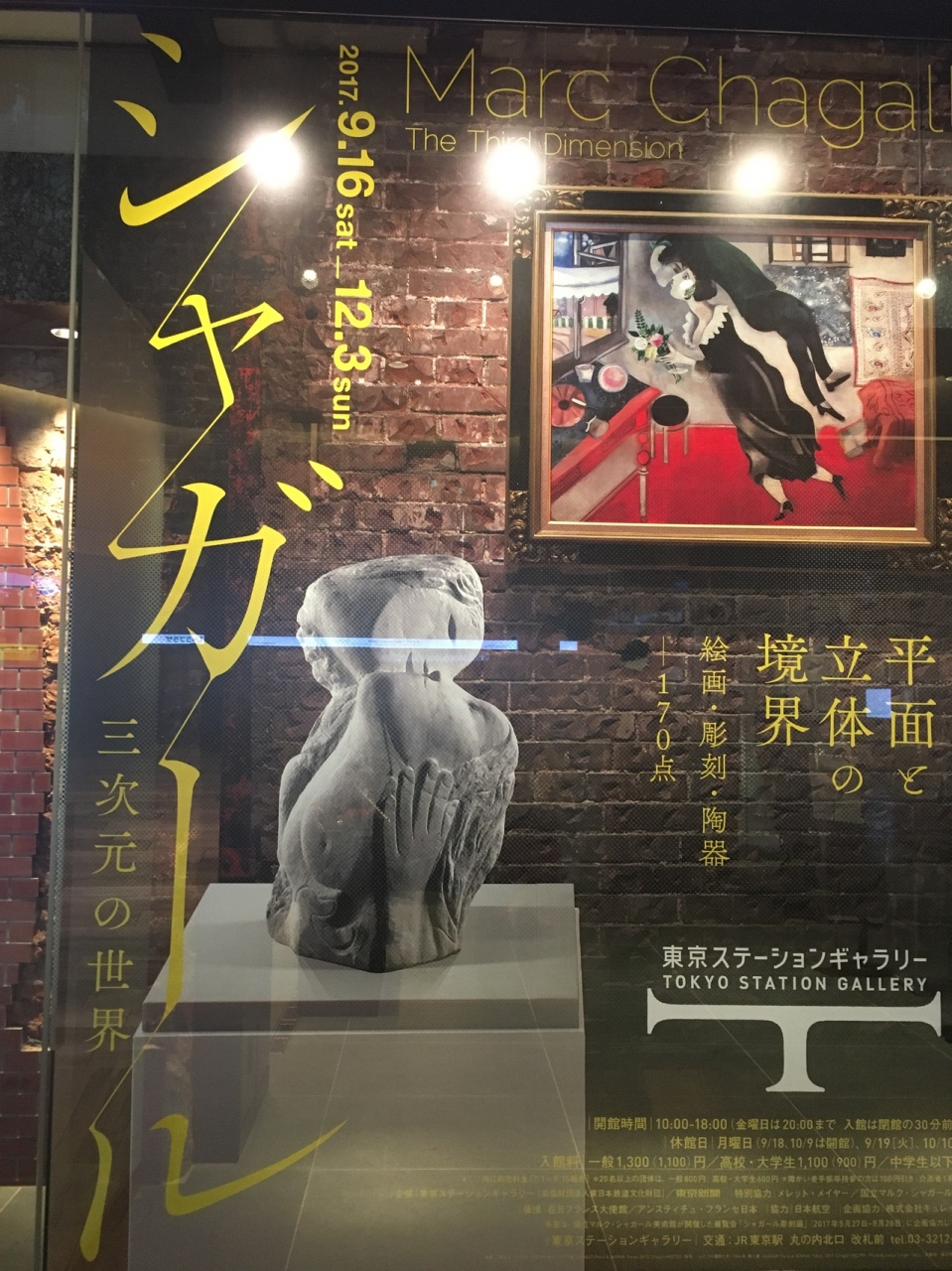 大好きなシャガールの回顧展が開催されていたので初めて東京ステーションギャラリーに行ってきました。東京駅らしい赤煉瓦をいかした内装はシャガールの世界観と妙にマッチしていて、非現実的な空間をつくりあげていました。