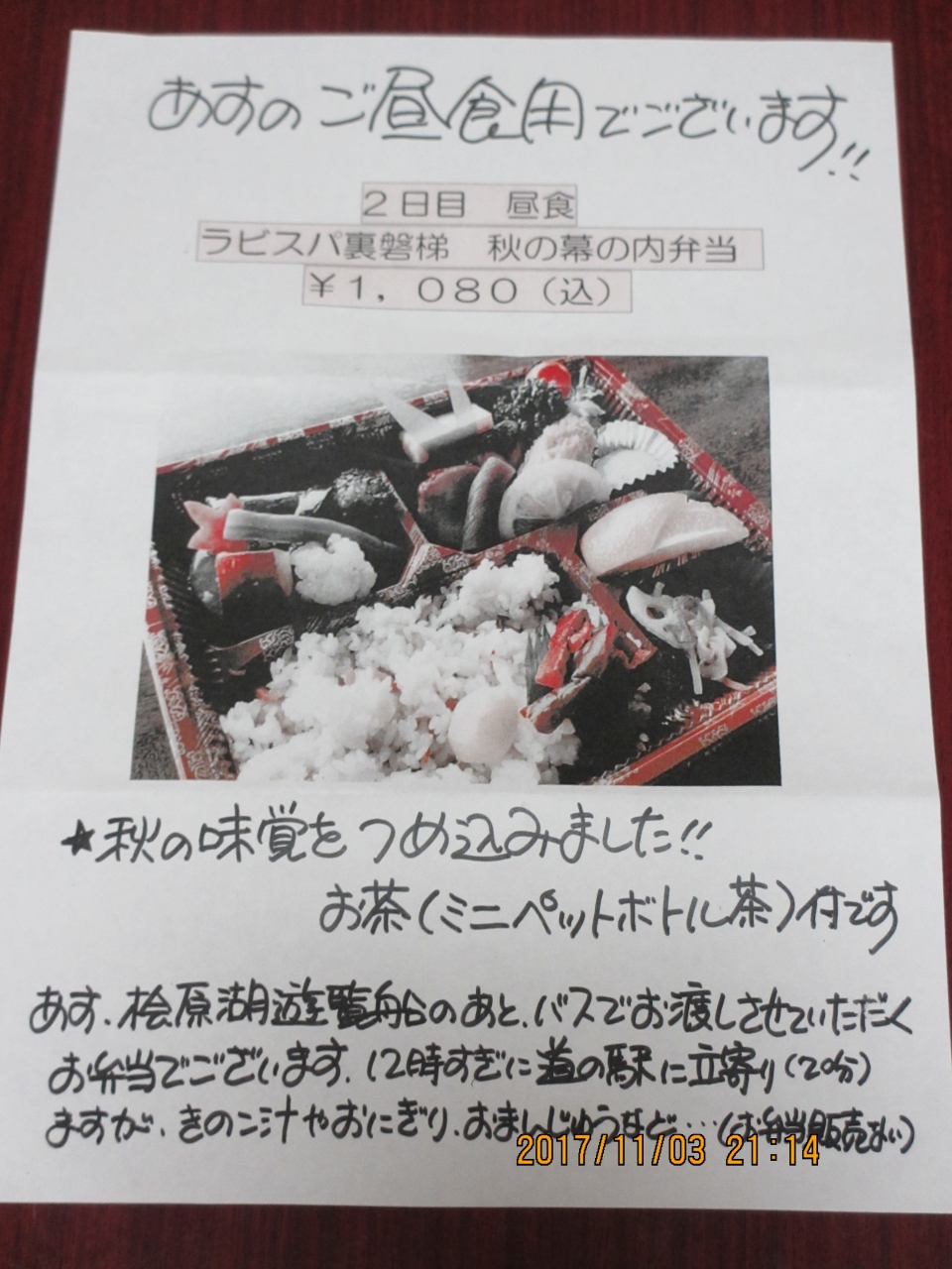 昼食オプションでこちらの弁当を購入。