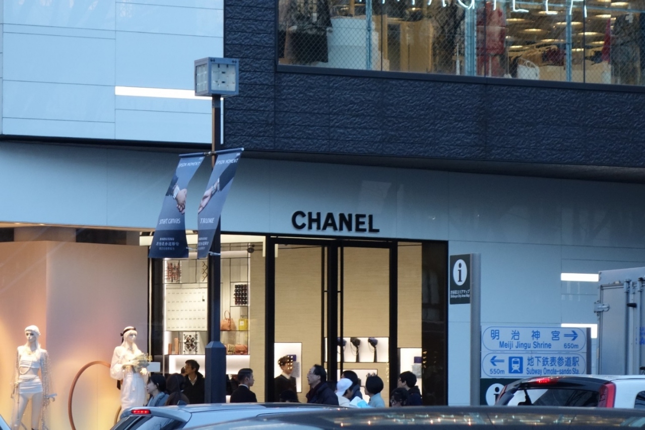 表参道にあるシャネルのフラッグシップショップです。光沢が有る白の外観に黒のロゴや差し色でキリッとしたイメージです。店内には外国からと思われるお客様が多く居て結構混んでいました。やはりシャネルは人気です。
