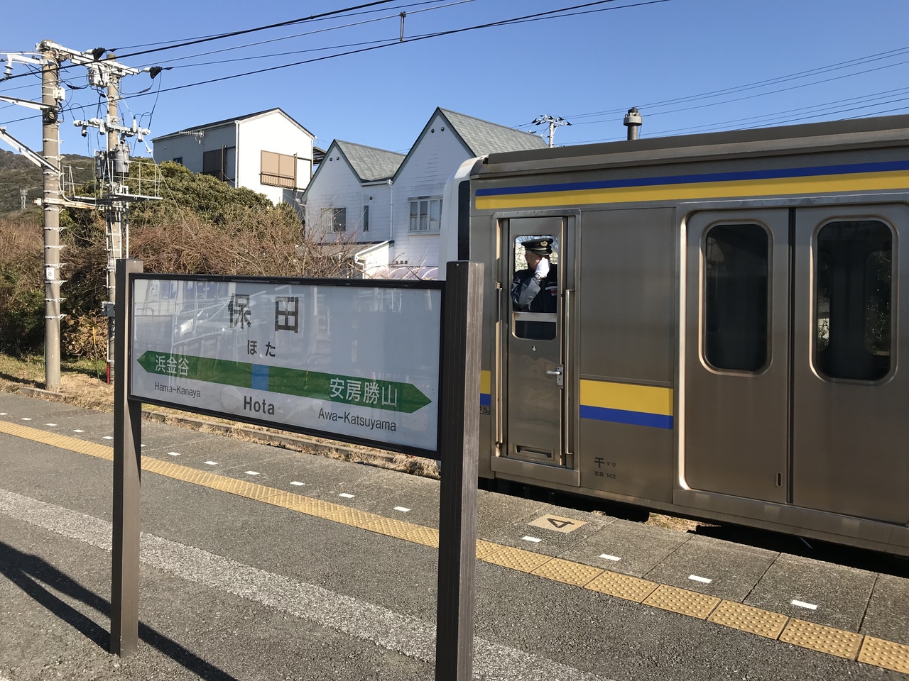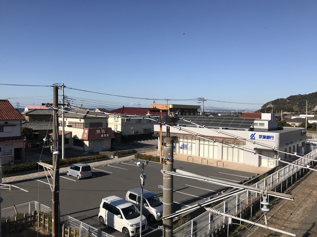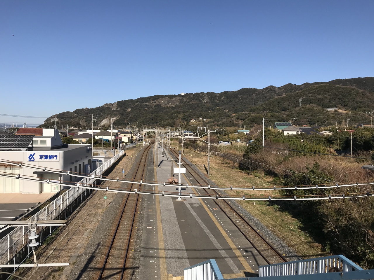 駅の跨線橋からは、北側に鋸山・西側には東京湾越しに富士山を眺められた。