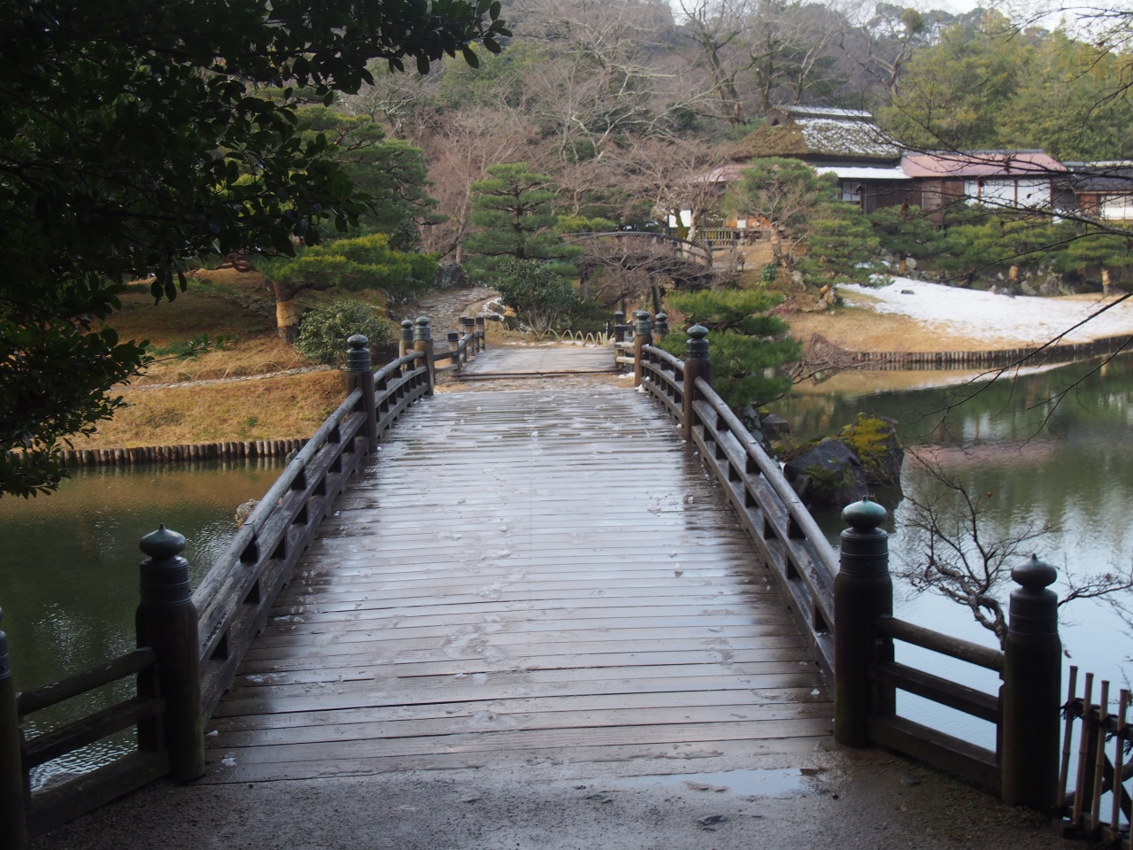 彦根城の入場チケットとセットになっていたので、彦根城の見学後に立ち寄りました。庭園は遊歩道がある見て廻れる回遊式の庭園で、庭には池と池の中の島などと典型的な日本式庭園のようです。庭園自体は大きくないので、30分もあれば見て廻れます。訪れたは寒い日であったので、あまり長居はしませんでしたが、天候のいい時期はゆっくり散策すのは気持ちよさそうです。