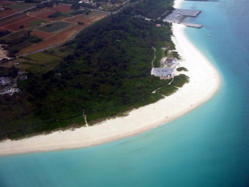 ビーチを横切ると与那覇湾上空を飛びますが、与那覇湾は沖縄製糖 宮古工場からの廃液で、昔から海は綺麗じゃないです。