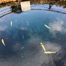 レンタカーで行きました。近隣の駐車場に300円で停め、少し歩くと透き通った水の池が。平日でしたが観光客が多く、ほとんどが中国からのようで賑わっていました。深さ7mの池が底まで透き通って見え、ブルーに煌めきとてもきれいでした。