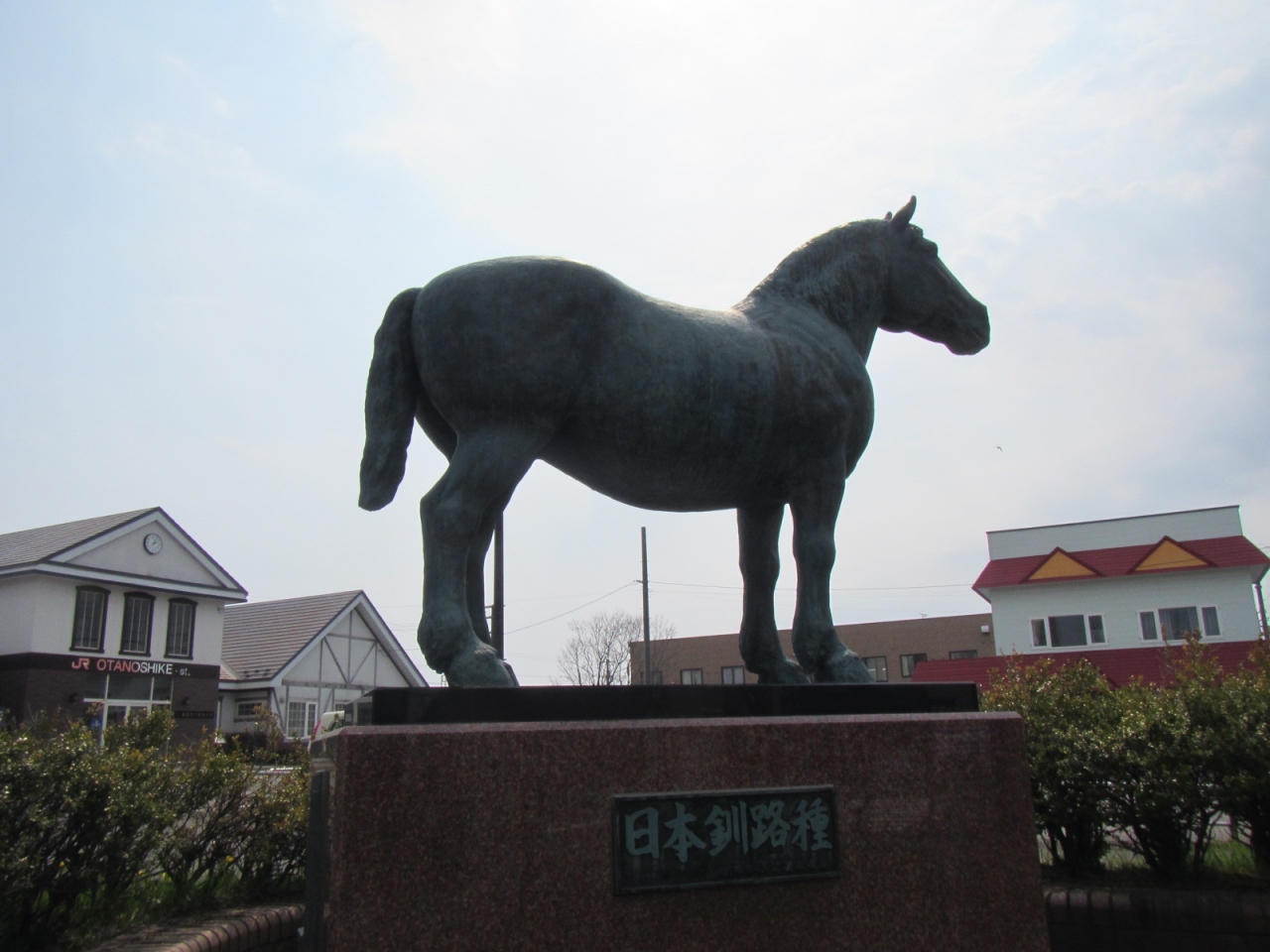 大楽毛駅前に立つ馬の像です。