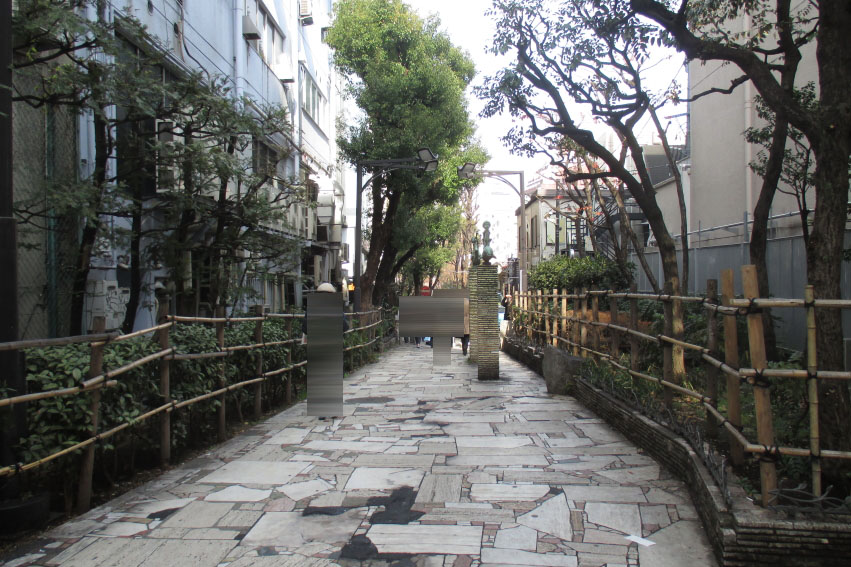 ここは1970年(昭和45年)に廃止された都電13系統(新宿駅前~水天宮前)の専用軌道敷の跡地だそうです。狭いながらも木々で埋まり、この一画だけは周り喧騒とは隔絶した空間を造っています。この都電の廃止されたのが1970年と聞いて、前回の東京オリンピックの時はまだ都電がいくつも走っていたのだなぁと隔世の感を禁じえませんね。