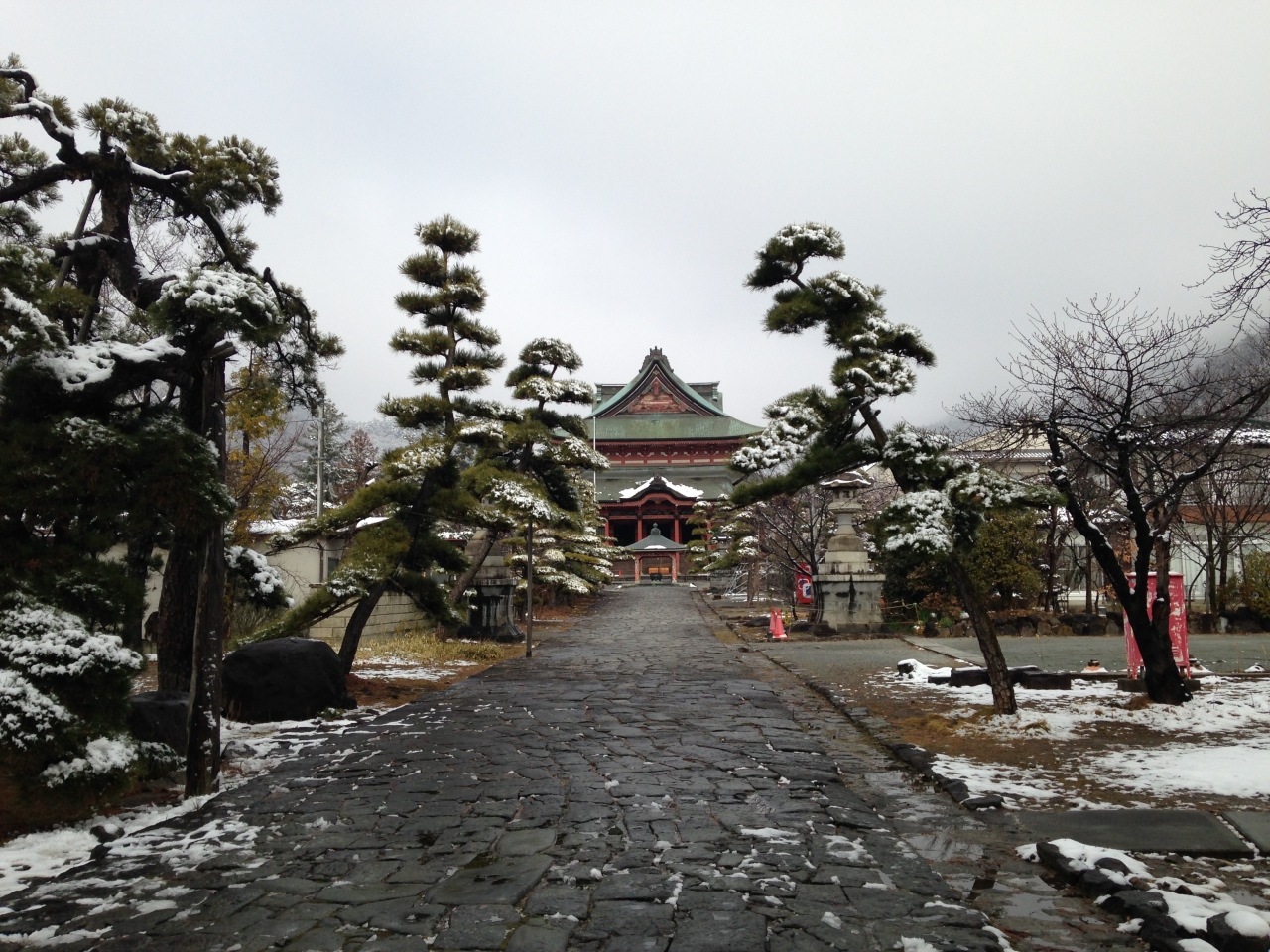 JR酒折駅から歩いて、酒折宮や不老園をへて甲斐善光寺に行きました。立派な山門をくぐり、中へ歩いて行くと赤い柱と白地、緑の屋根の甲斐善光寺があります。長野の善光寺にも行ったことがありますが、こちらにも下を歩くコースがあります。
