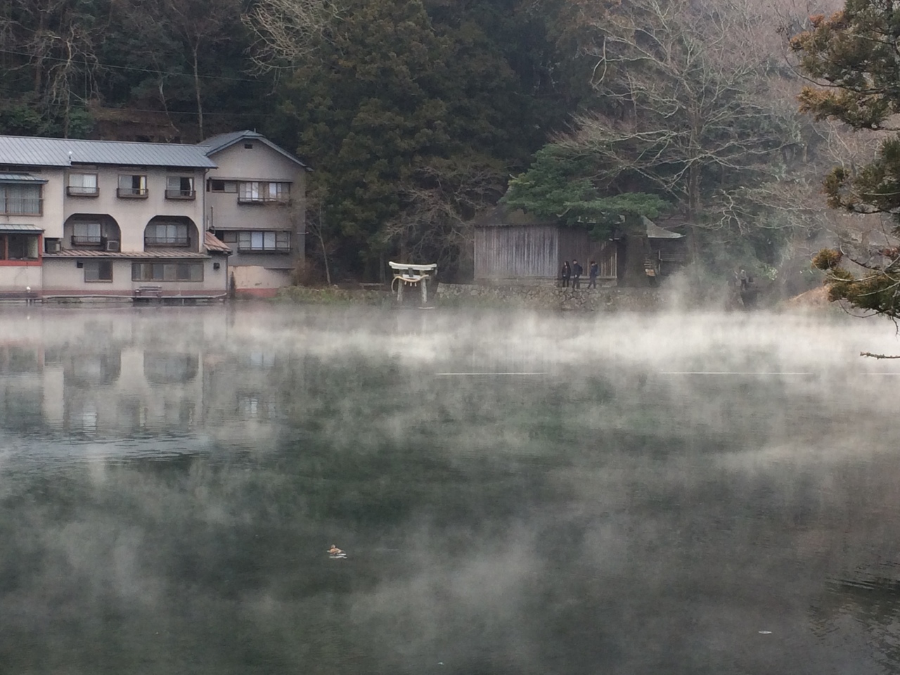 湯布院に行った際立ち寄りました。湖というよりは池という感じです。地底から温泉が湧き出ていて、河川も流れてきているため、温度差から湯気が立ち上がっています。とても幻想的で美しかったです。可愛いガチョウにも会えました。