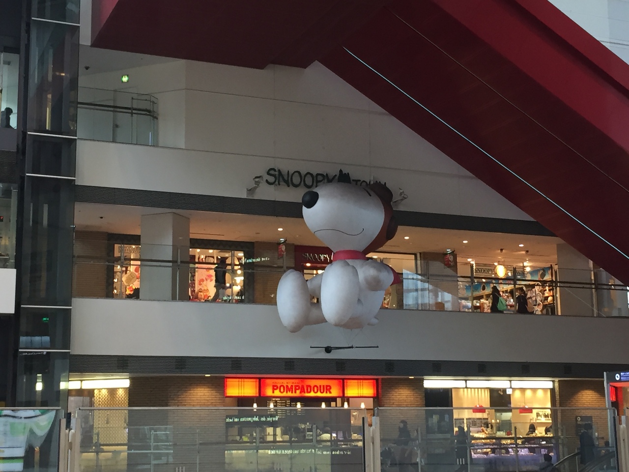 吹き抜けの空間にドーンと目立つ、このスヌーピーのバルーンは