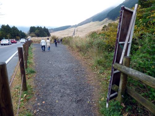 箱根登山バス 仙石案内所から約2km モミジの点在する歩道を歩いて20分ほどの仙石原高原交差点に仙石原のススキ平原の入り口があります。