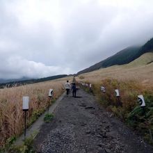 入口からはススキ平原の真ん中に歩道が伸びて、左右のススキの原を見ながら散策が出来ます。