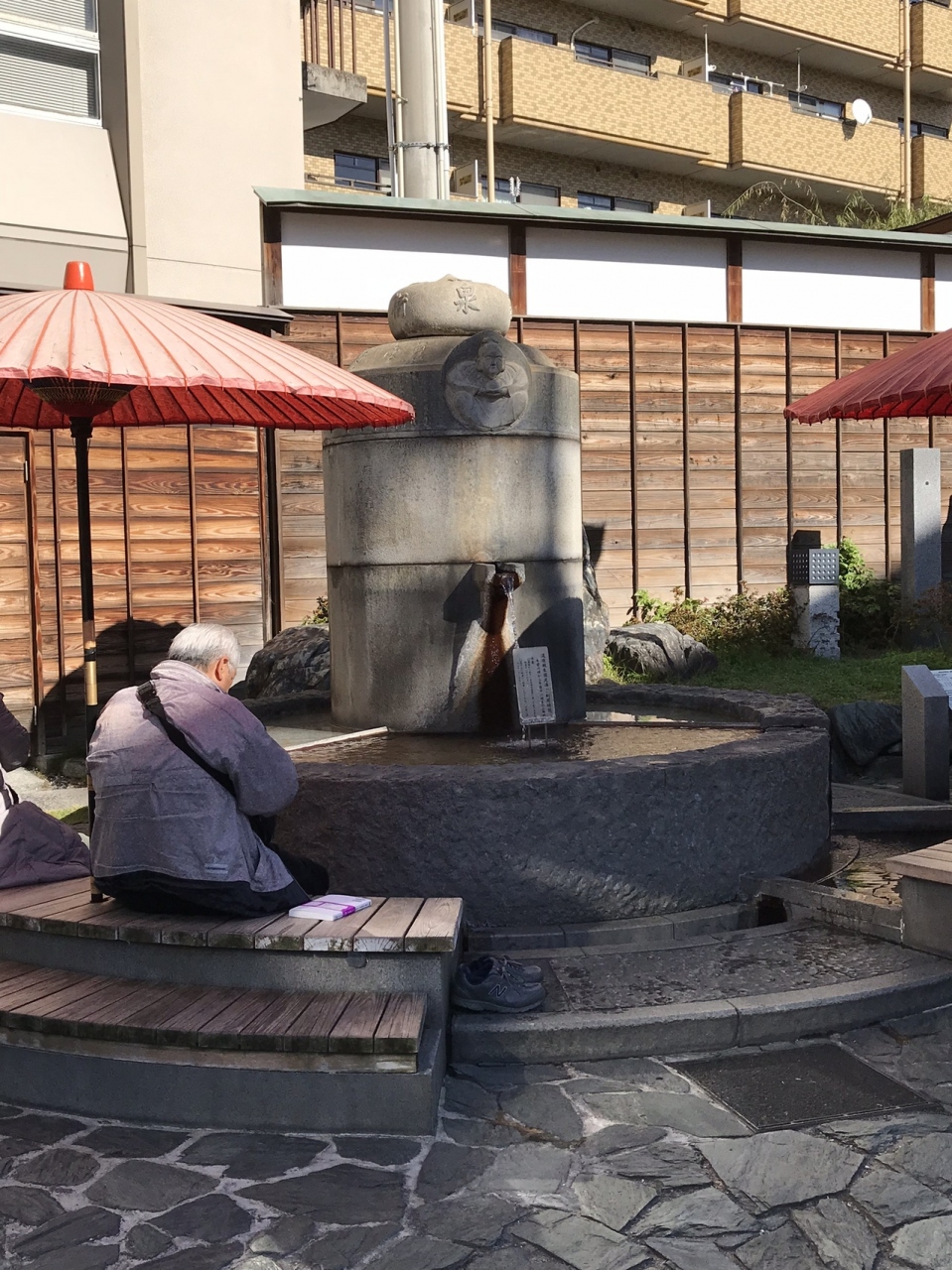 いろんなところに、足湯があります。駅前、ホテル、レストランの横など…。