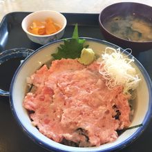 サバ味噌とかサンマとか魚の和定食はもちろん、市場ならではのマグロねぎとろや中落ちなども楽しめます。
