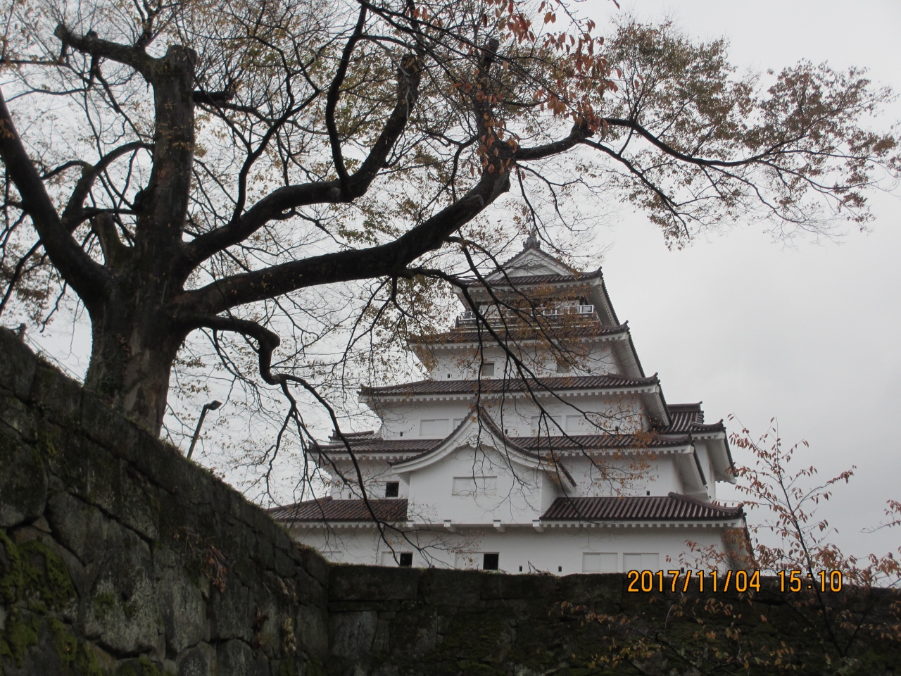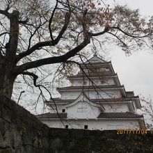 鶴ヶ城会館にバスが駐車し、北口から入城。