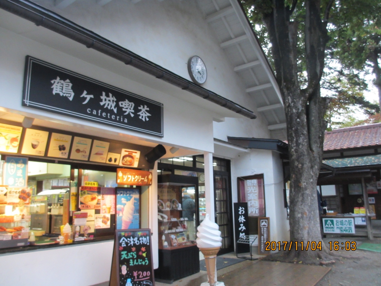 鶴ヶ城会館にバスが駐車し、北口から入城。