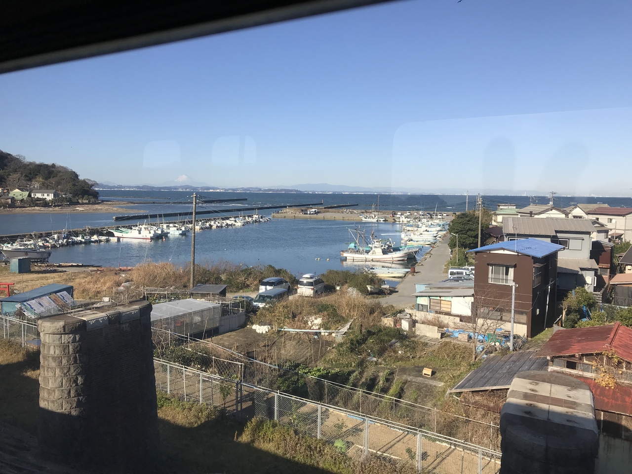 東京湾沿いを走る車窓は、東京湾と三浦半島の風景を垣間見る事ができる。