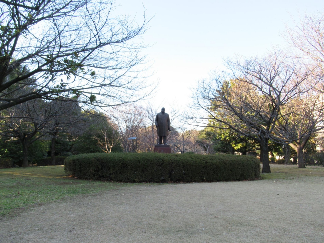 北の丸公園を散策中清水門に向かう折、科学技術館の北西方向の植込みに銅像を見掛け近付いてみると、かつてのワンマン総理の吉田茂の立像でした。
