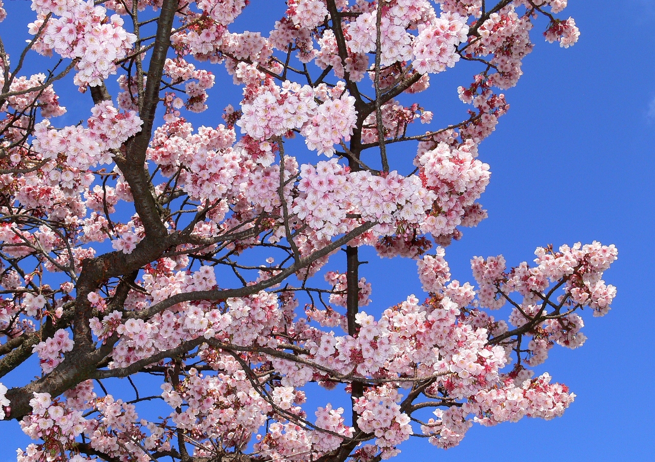 寒さの中 日本一早い桜として有名な あたみ桜は綺麗に咲いています