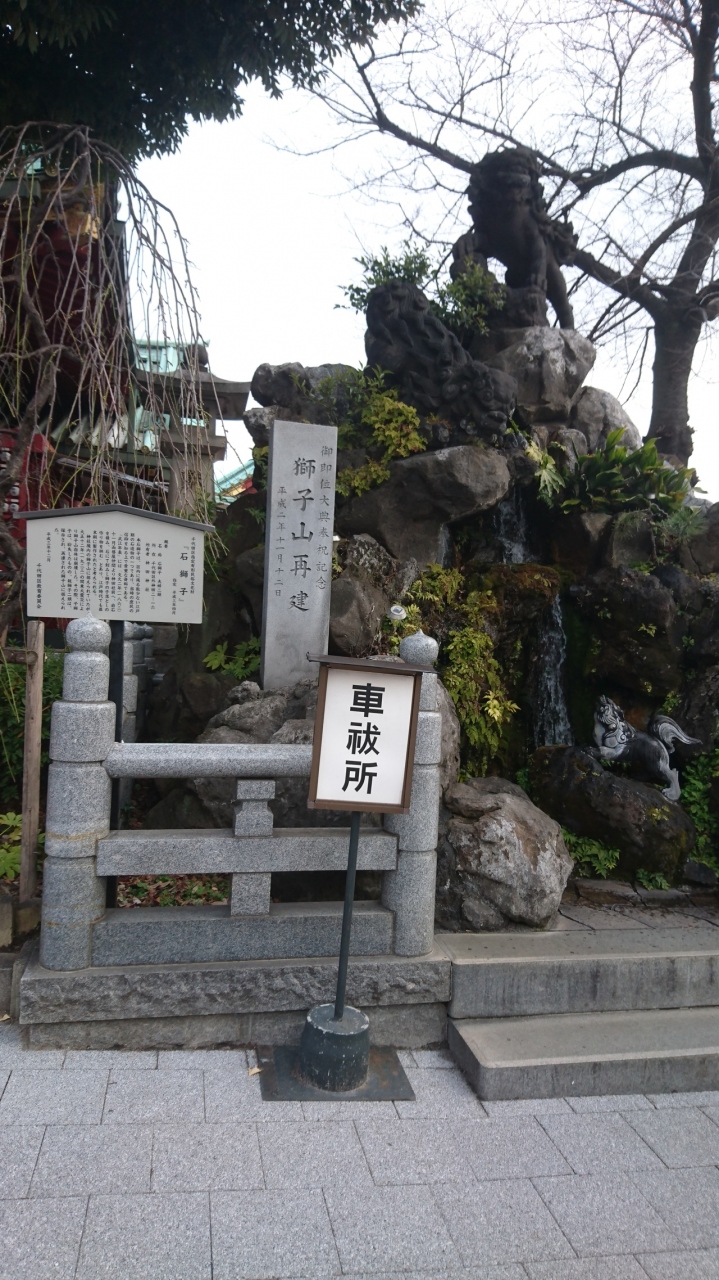 神田明神の本殿前右側に石獅子の乗った大きな岩山があります。これは親獅子が子獅子を谷底に突き落とし、這い上がってきた子を初めて我が子とするという内容を造形化した江戸時代の石造物だそうです。名工による石獅子ということで、とても迫力のある造形でした。
