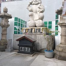 神田明神の随神門を通ってすぐ左側に大きな大黒様がいらっしゃいました。昭和51年に造られたもので、高さ6.6m、重さ約30トンもあります。石造りとしては日本一の大黒像として建立されたもので、多くの参拝客がお参りをしていました。