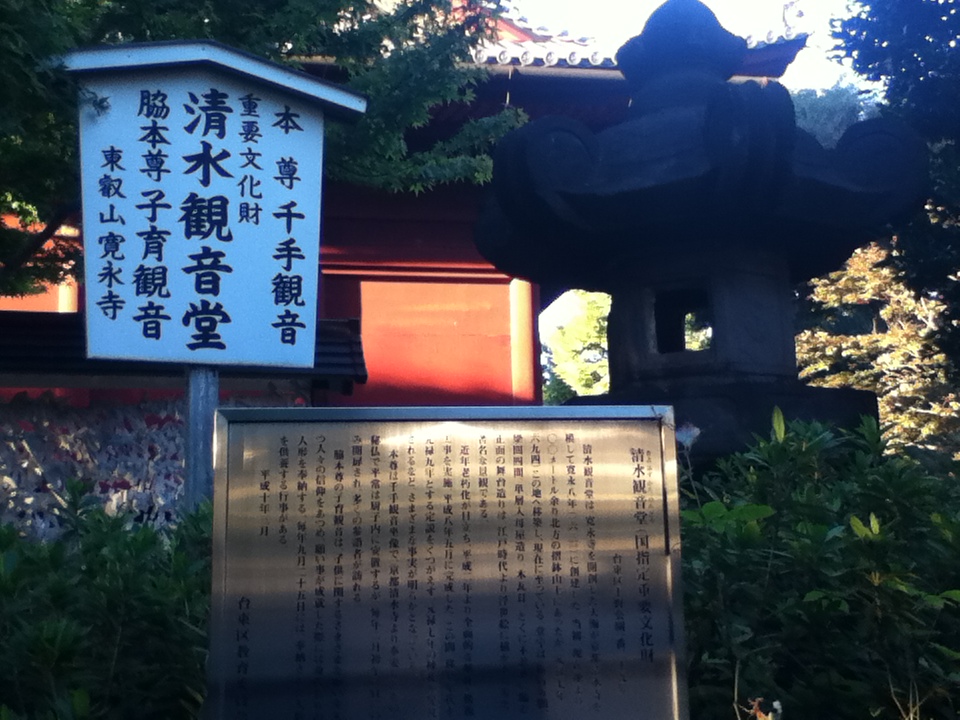 上野駅西側の上野公園内にある。週末午後、多くの人が来ていた。お勧めの点は、清水観音堂は寛永寺の伽藍の一つで、寛永8年(1631)擂鉢山に建立、その後こちらに移転されて以来多くの人々が訪問していること、江戸三十三観音霊場6番、東京三十三観音霊場30番になっていること、西郷隆盛の銅像付近から上野公園をあるい行くと木々の奥にこちらの朱色の観音堂が見え綺麗であること、観音堂の建物は今でも比較的綺麗で美しいデザインであること、西側の不忍池から石段を上がっていくと観音堂の綺麗な月の松が見えること、また逆に観音堂の舞台から月の松やその先の美しい景色が見えること、駅から徒歩で行けることである。