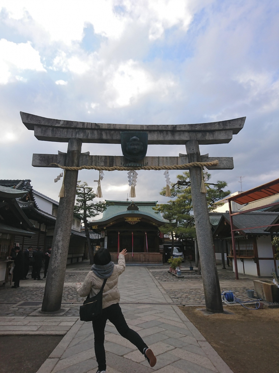 祇園の喧騒から離れた、住宅街のど真ん中にあります。七福神のおみくじが、小さい福の神(極小のフィギュア)が入ったもので7種類集めようとしている人を見て私も欲しくなりました。鳥居の上にえびすさんの顔あって、 熊手と籠があるので皆頑張って小銭を投げ入れていました。投げた小銭が上にある顔に入るとちょっといい気分になりそうです。