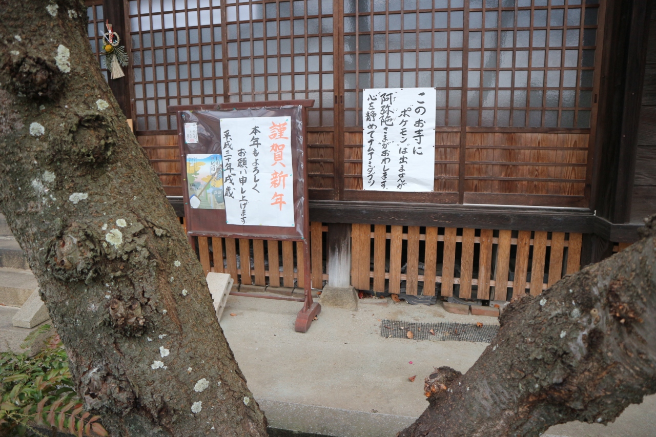 ポケモンは出ないが阿弥陀さまがおわします。という張り紙あり!