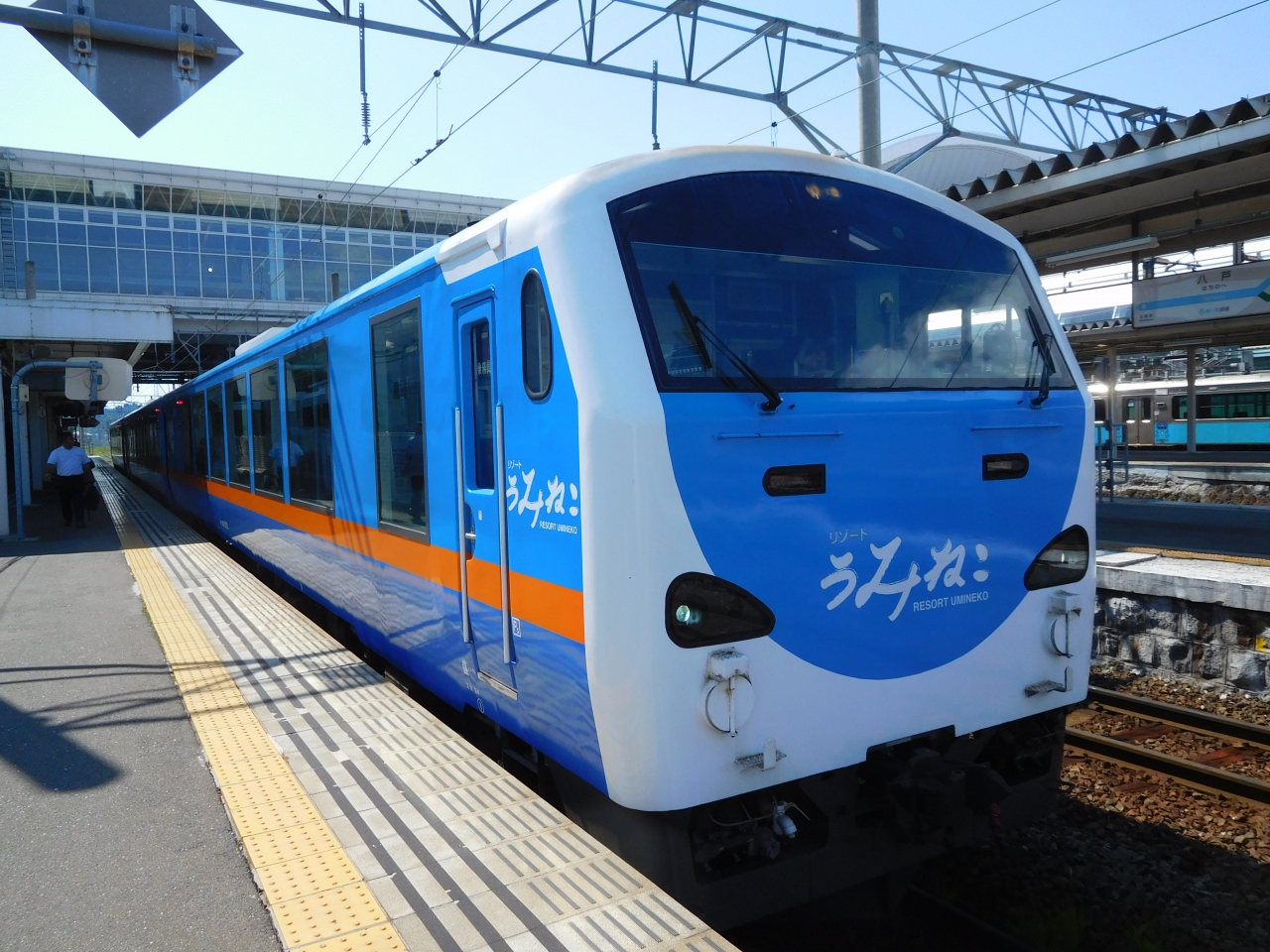 青森県の八戸駅と岩手県の久慈駅を結ぶ八戸線を、週末だけ、1日に1往復だけ走るリゾート列車です。3両編成で1号車と3号車はリクライニングシート、2号車はボックスシートです。八戸から久慈へは先頭の3号車、久慈から八戸へは先頭の1号車が指定席になり、他は自由席です。大事なのは、1号車と3号車は、海側が1人掛け、陸側が2人掛けということです。もちろん、海側の方がはるかに景色がいいんです。しかし、海側指定席は10席くらいしかなく、陸側席でも20席くらいしかないんです。季節によっては指定席、特に海側席を確保するのがとても困難になります。