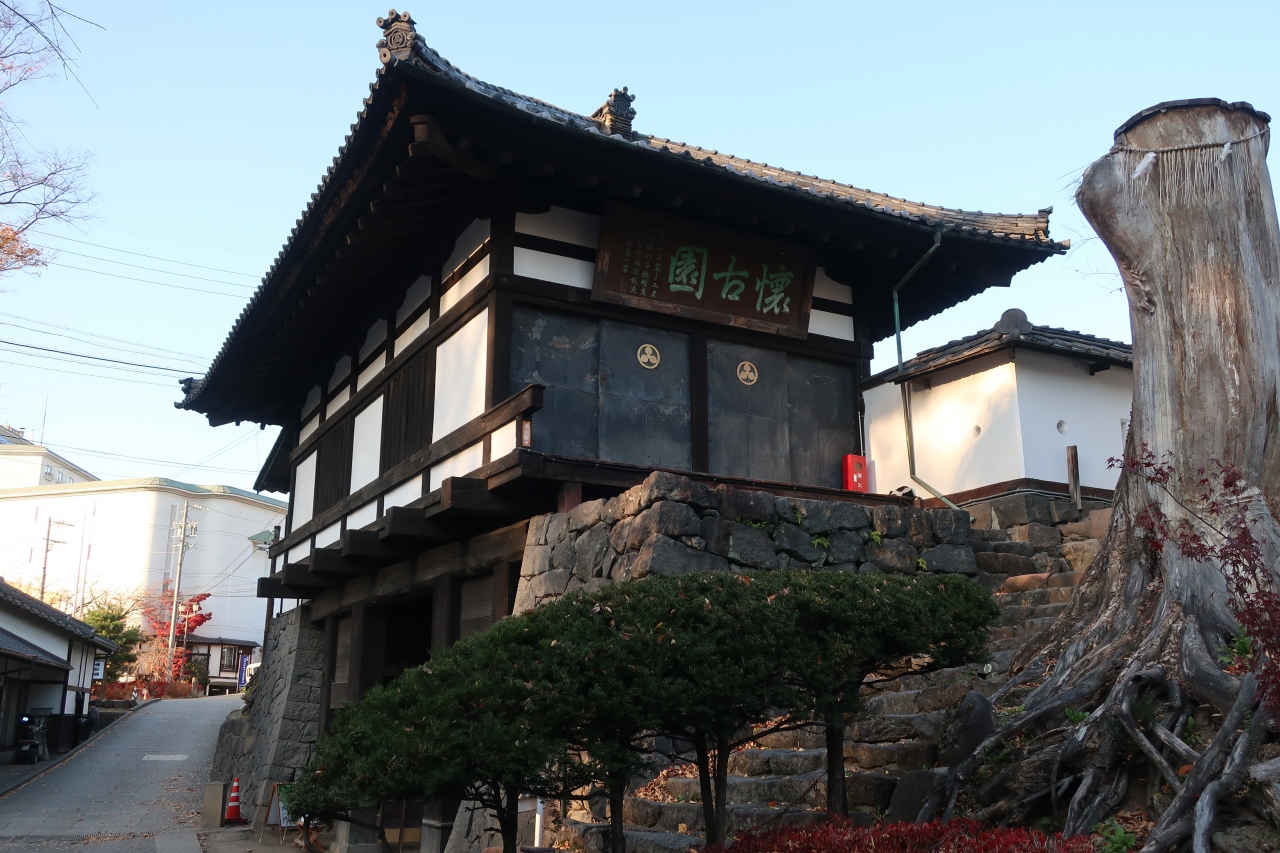 小諸城の遺構では大手門と三の門だけが重要文化財にしてされています。三の門の両側にある石垣の上に作られた渡り櫓には矢狭間・鉄砲狭間が残り、お城の防御機能が見て取れます。そして門の上に掛かる達筆な文字で書かれた「懐古園」額は徳川家達の書。こちらの額は有名ですが、側面にも「懐古園」が掛かっています。こちらは誰の書やら気になりました。