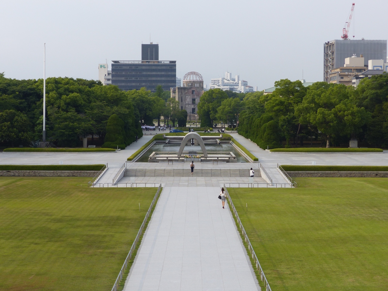 原爆ドーム・原爆死没者慰霊碑・平和記念資料館が南北に直線的に並んでいる光景が印象的でした。