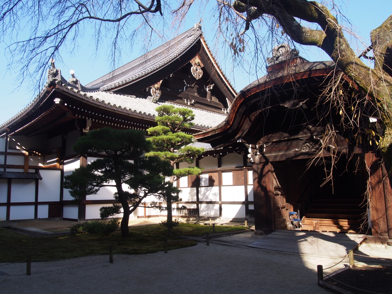 法然上人御堂(集会堂)は知恩院の御影堂のすぐとなりにある建物です。御影堂が現在、修復工事中のために法然上人の御尊像などはこちらに安置されています。集会堂は広い建物です。方丈庭園の見学のために、靴を持って、集会堂のなかを歩いて回りました。途中に祈祷などの行事も見学できました。