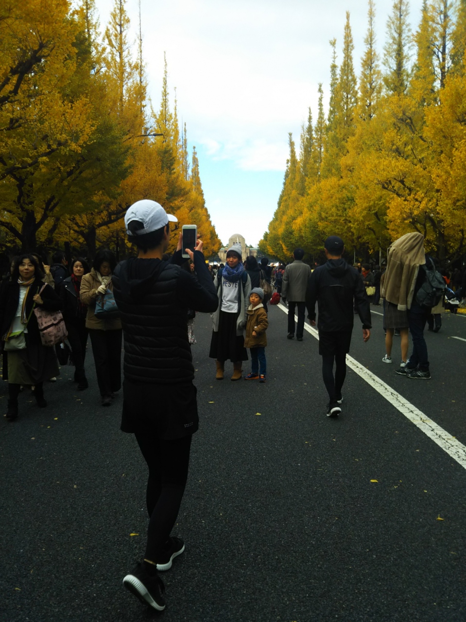 明治神宮外苑のいちょう並木は11月中旬から12月初旬にかけていちょう祭りがおこなわれています。両サイドのいちょうは黄色に色づきとてもきれいです。たくさんの人が写真撮影しています。インスタ映えするようなスポットがたくさんあります。広場では屋台もでてイベントもやってます