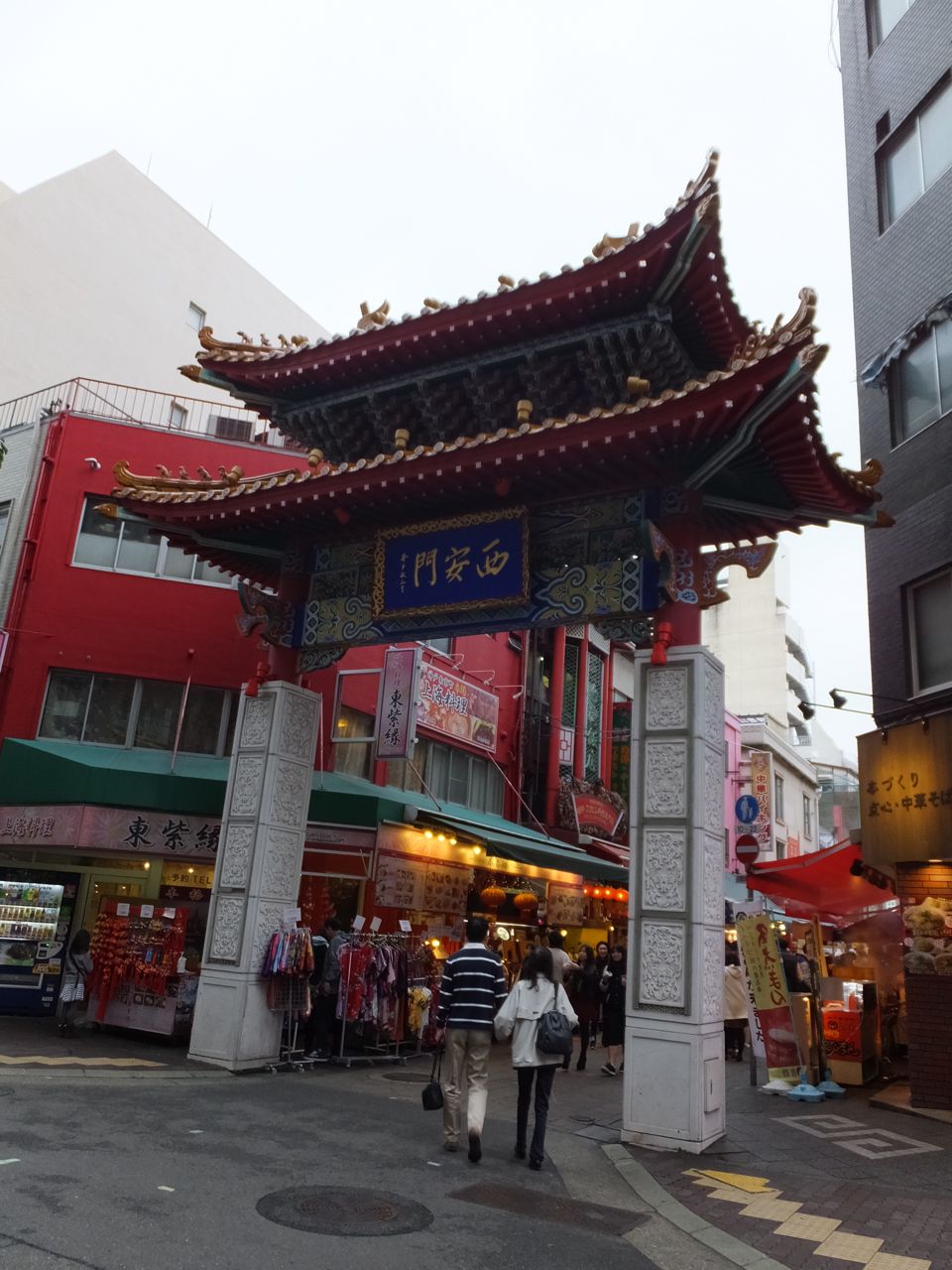 中華街訪問は普通は元町駅でしょうからこの門を通ることはないでしょうが、ここから急ににぎにぎしい世界になるギャップが面白いです。門自体はそう高いものではなく幅も普通のクルマ1台とおれるくりの狭さですが、赤青のハデなもので中華街をよく現しています。反面柱が白いのはちょっと独特かな、という気がします。