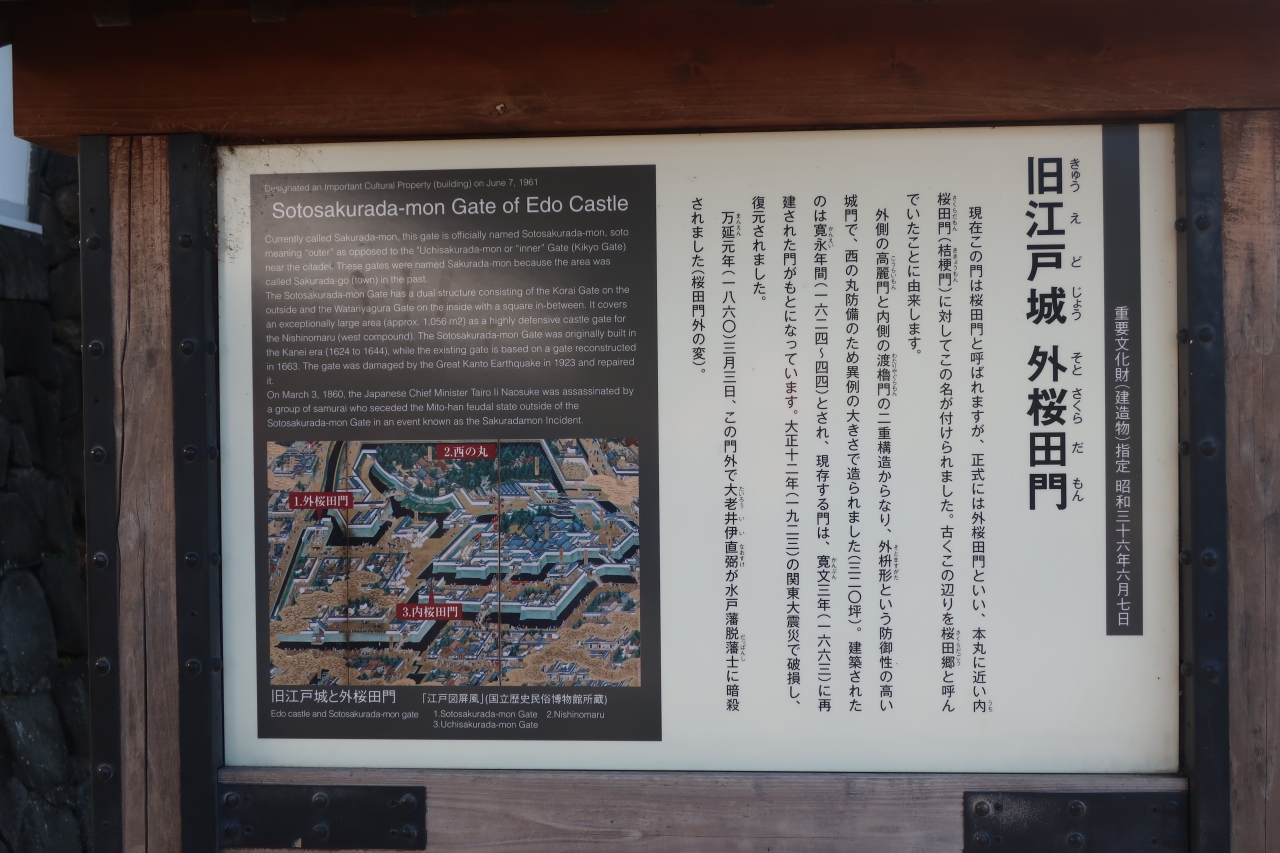 警視庁の正面、旧江戸城の西の丸にある枡形門です。井伊直弼が襲撃された桜田門外の変があった場所の近くで、旧江戸城の門の中では一番有名な門だと思います。