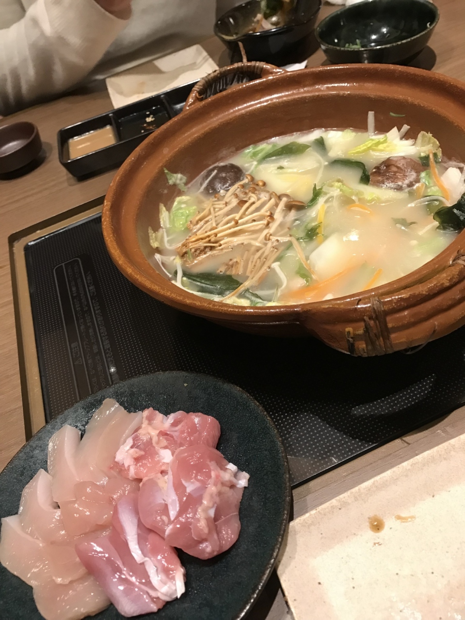 ワンカルビと同じ系列の店です。阿波尾鶏のとり焼きと鍋の食べ放題です。鳥は鉄板で9種の部位で先にこれを食べます。30分ほどすると鍋が来ます。鍋は水炊き、すき焼き、うま辛味噌鉄板鍋の中から一つ選びます。そのほかサイドメニューで手羽先やラーメン、唐揚げ、炊き込みご飯などもあります。なかなか斬新ですが、焼肉やしゃぶしゃぶと違い、一度行ったらもういいかなというのが感想です。かなり混んでいるので、数日前から予約するのがいいでしょう。