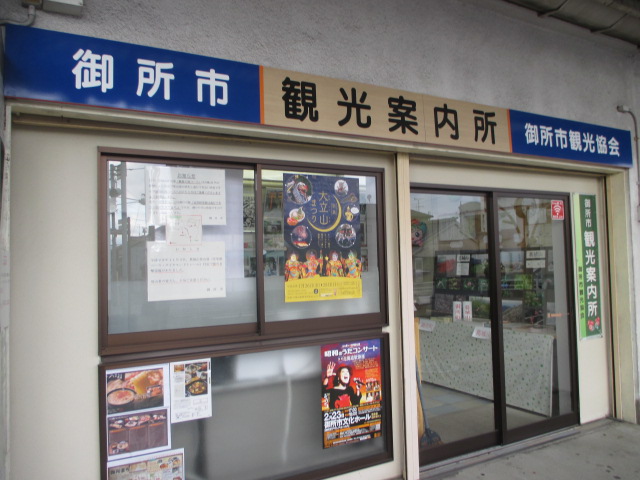 近鉄御所駅のすぐ横にある小さな観光所です。中に入ると一見無愛想なスタッフがいました。ところがこのスタッフは、御所の知識が非常に豊富で親切でした。この道は坂がきついのでこっちから行けばいいとか、御所を知り尽くしたスタッフでした。