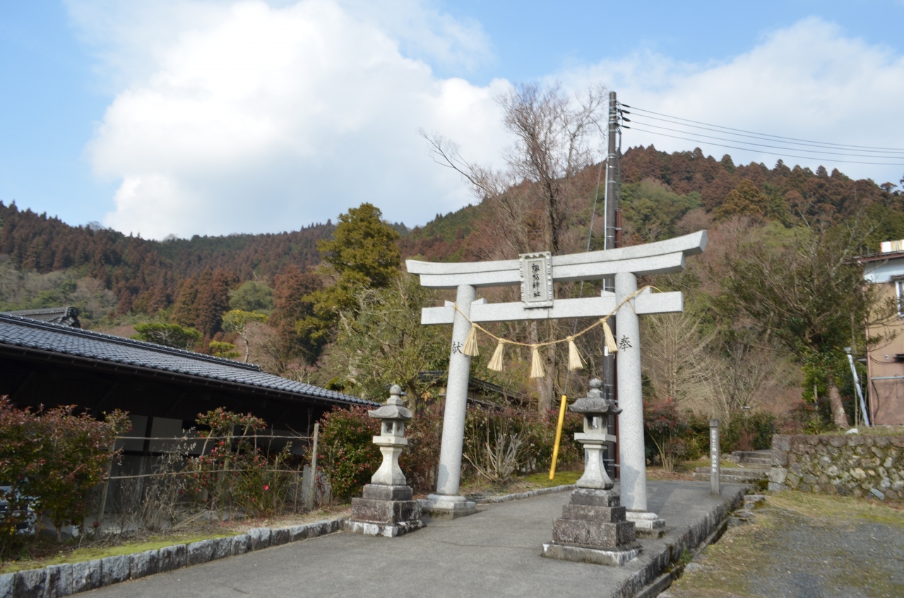 因幡街道から坂を登ります。かなり登った先に鳥居がありました。智頭宿に来る人は、街道筋に見所が多いので集中するのでしょうが、この神社に参拝する人は見かけませんでした。しかしながら、坂を登るので見晴らしがいいのと、静かなのでお薦めの場所です。