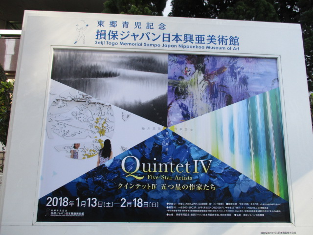 西新宿の損保ジャパン日本興亜本社ビル1階入口よりエレベーターで42階にあがると展望フロアがあり副都心を眺め東郷青児記念損保ジャパン日本興亜美術館展示室へ入場できます。企画展は将来有望な5人の中堅作家たちの企画第4弾「クインテット」(五重奏)作品を80点ぐらい展示していて見ごたえあります。常設展は東郷青児作品の他、ゴーギャンの「アリスカンの並木路、アルル」、ゴッホの「ひまわり」を展示してます。リーズナブルな価格(600円)で混雑なくのんびり鑑賞できますので新宿訪問の際には足を延ばしてお立ち寄りをお勧めします。